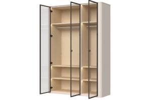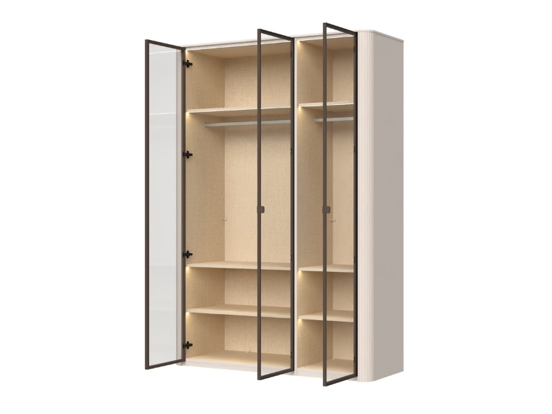 Dulap cu 3 usi cu balamale RONDO 153x225x56cm casmir/ sticla Parsol, manere Midnight Copper