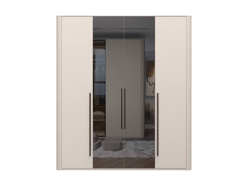 Dulap cu 4 usi cu balamale RONDO 198x225x56cm casmir/ oglinda, manere Midnight Copper