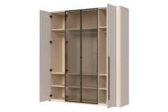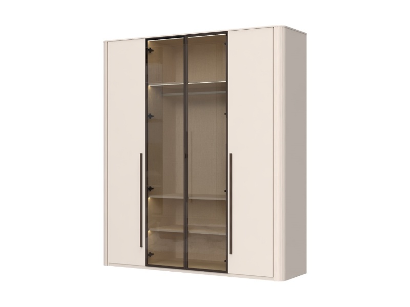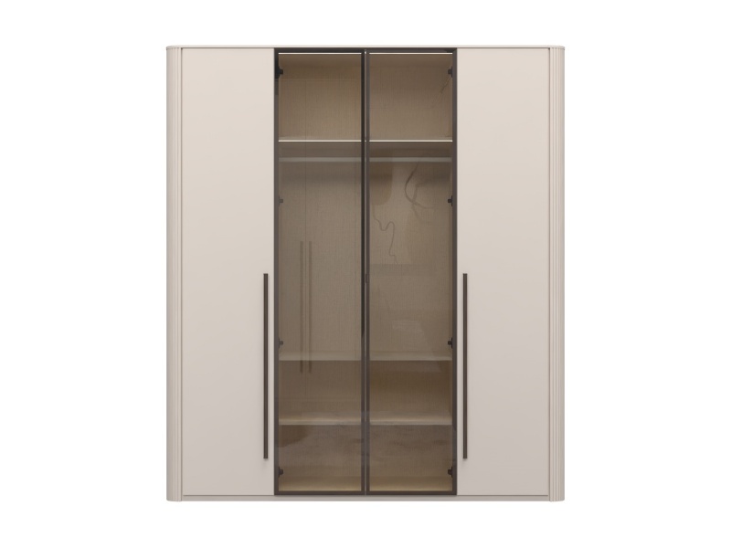 Dulap cu 4 usi cu balamale RONDO 198x225x56cm casmir/ sticla Parsol, manere Midnight Copper