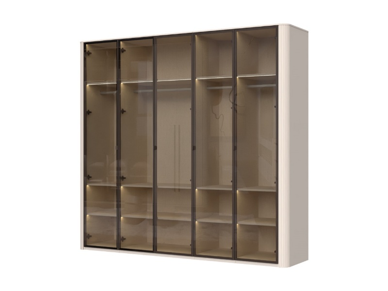 Dulap cu 5 usi cu balamale RONDO 243x225x56cm casmir/ sticla Parsol, manere Midnight Copper