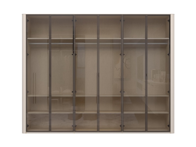 Dulap cu 6 usi cu balamale RONDO 288x225x56cm casmir/ sticla Parsol, manere Midnight Copper