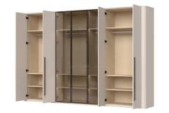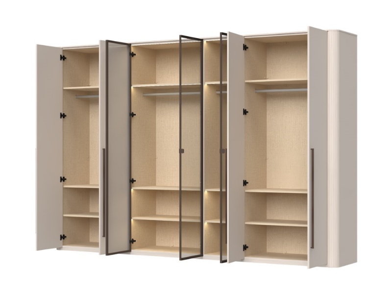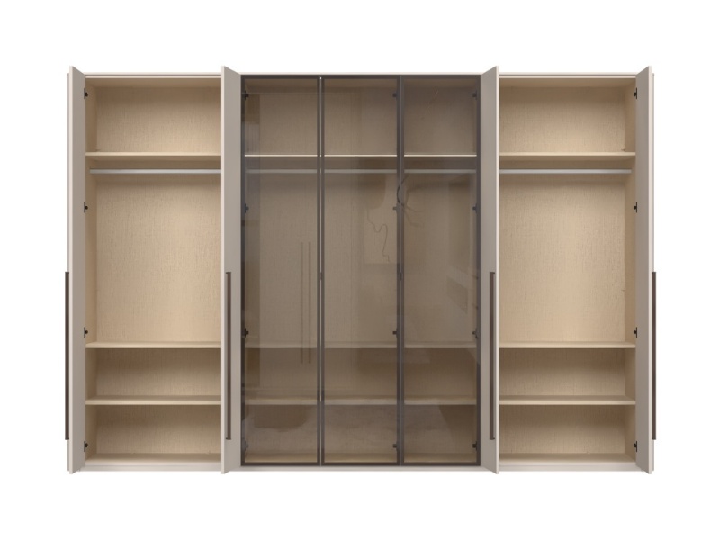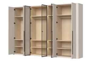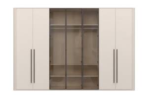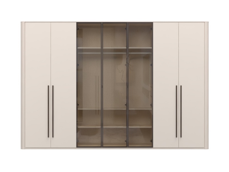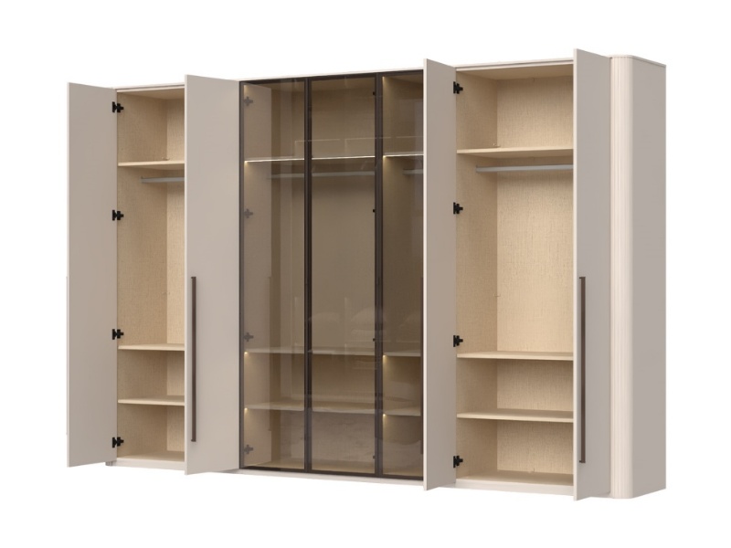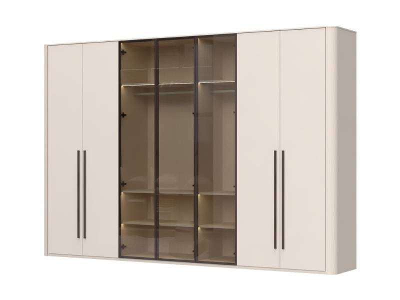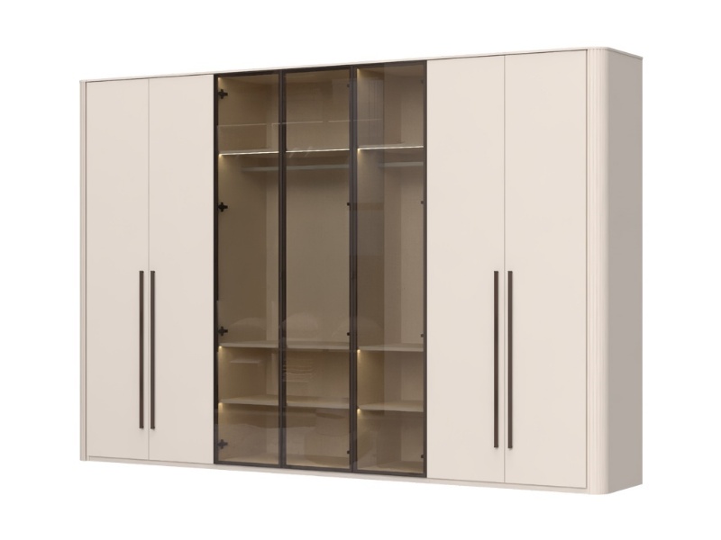 Dulap cu 7 usi cu balamale RONDO 333x225x56cm casmir/ sticla Parsol, manere Midnight Copper