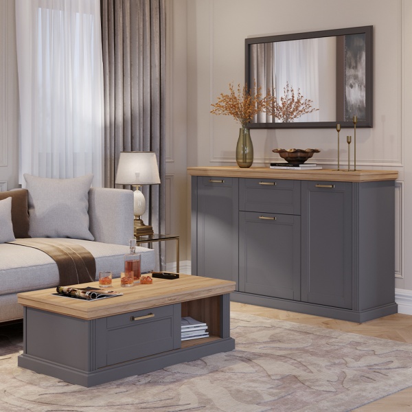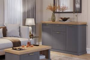 Comoda cu 3 usi si 1 sertar TARA GREY 167x102x48cm grafit/ Nuc Pacific