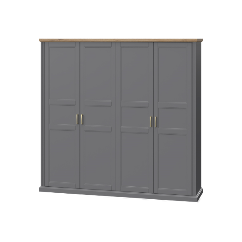 Dulap cu 4 usi cu balamale TARA GREY 236x227x59cm grafit/ Nuc Pacific