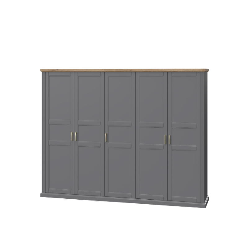 Dulap cu 5 usi cu balamale TARA GREY 291x227x59cm grafit/ Nuc Pacific