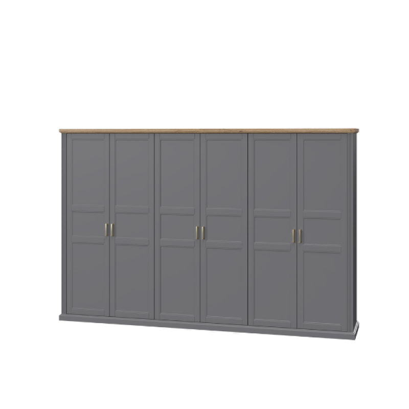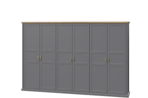 Dulap cu 6 usi cu balamale TARA GREY 346x227x59cm grafit/ Nuc Pacific