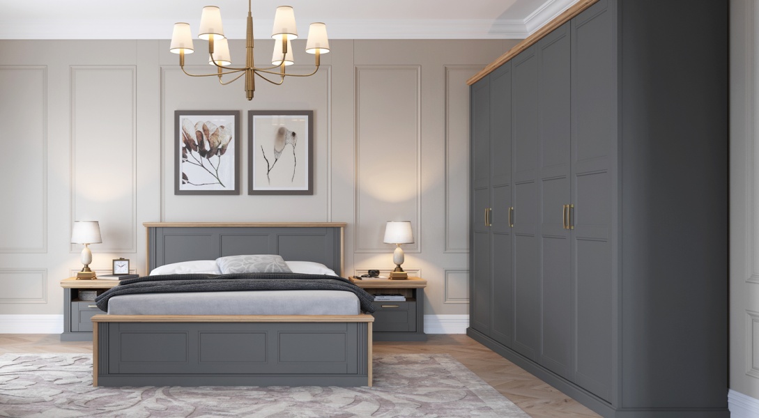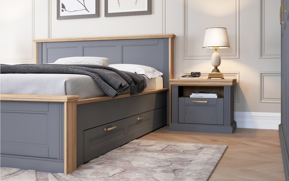 Pat cu somiera TARA GREY 160/ 180cm grafit/ Nuc Pacific