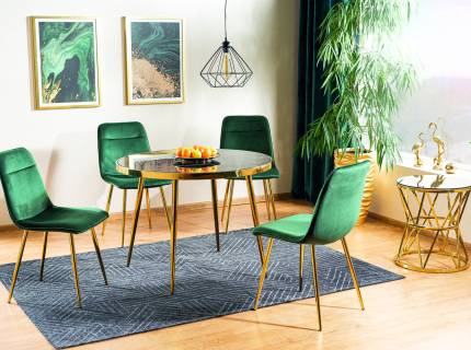 Masa CALVIN din sticla cu efect de marmura neagra, metal auriu 100xH75cm