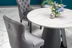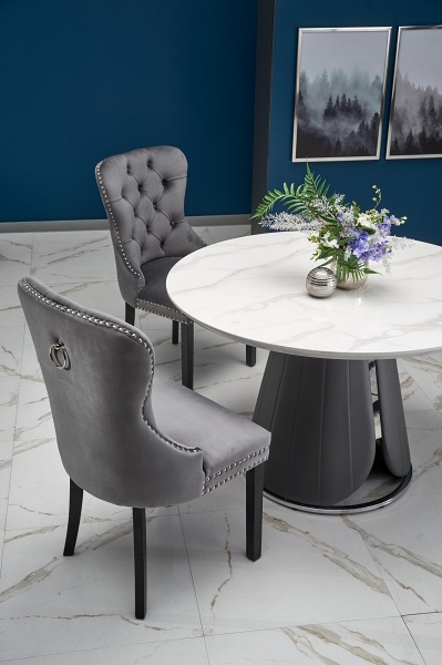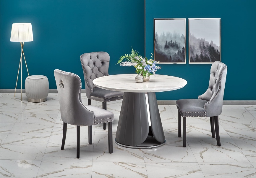 Masa REMIGIO din MDF cu efect de marmura alba, ecopiele gri 120xH77cm