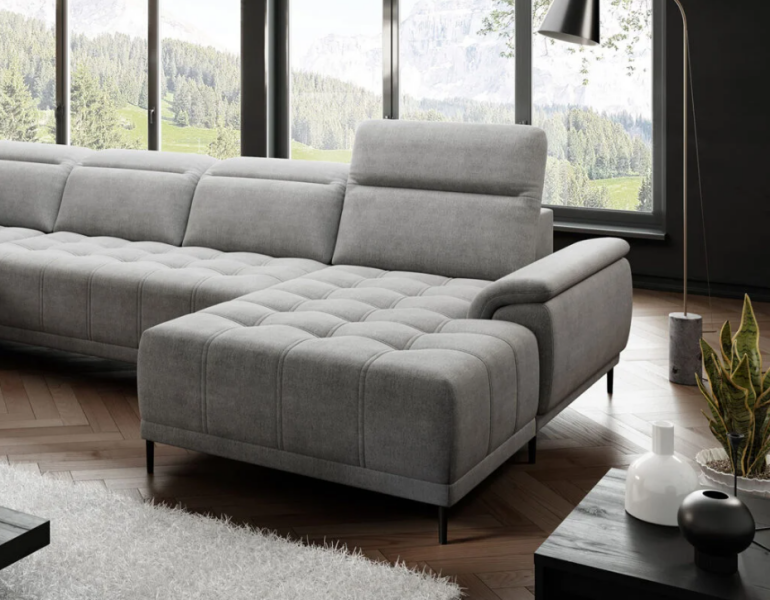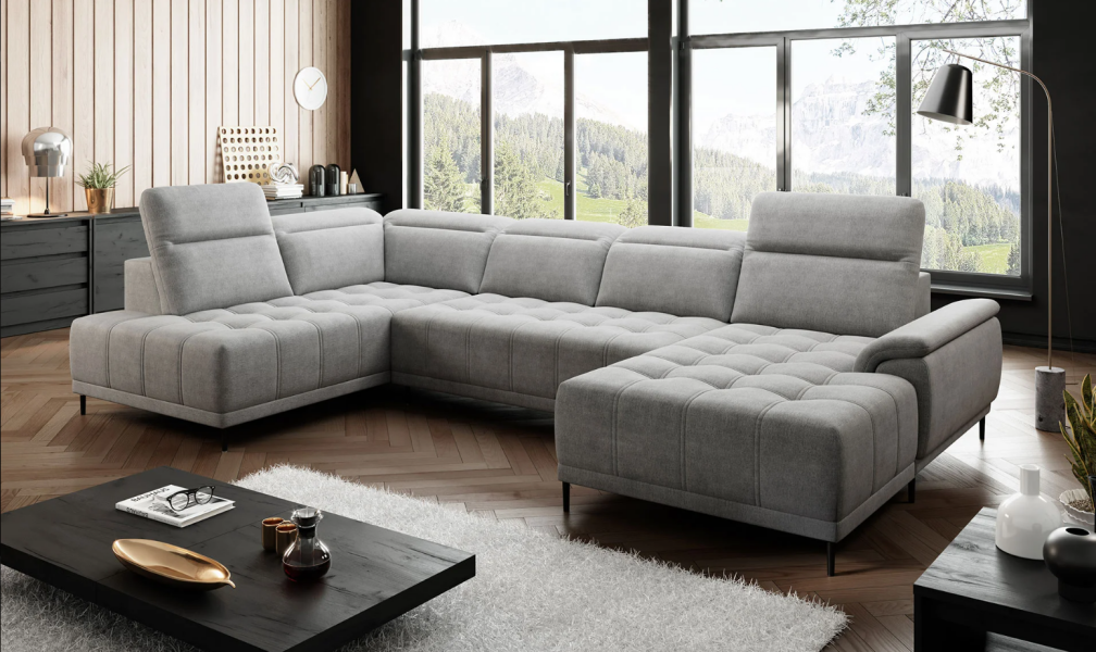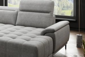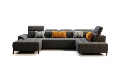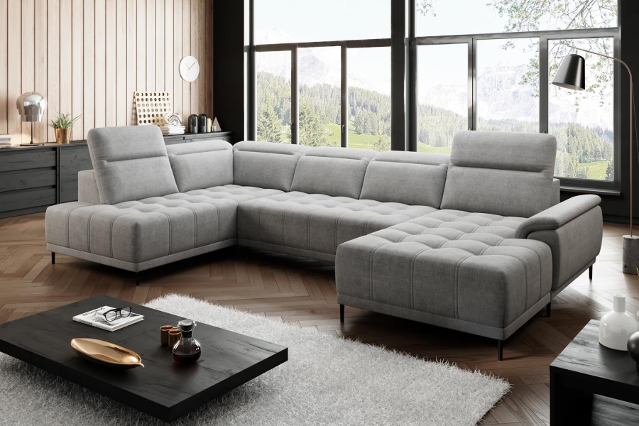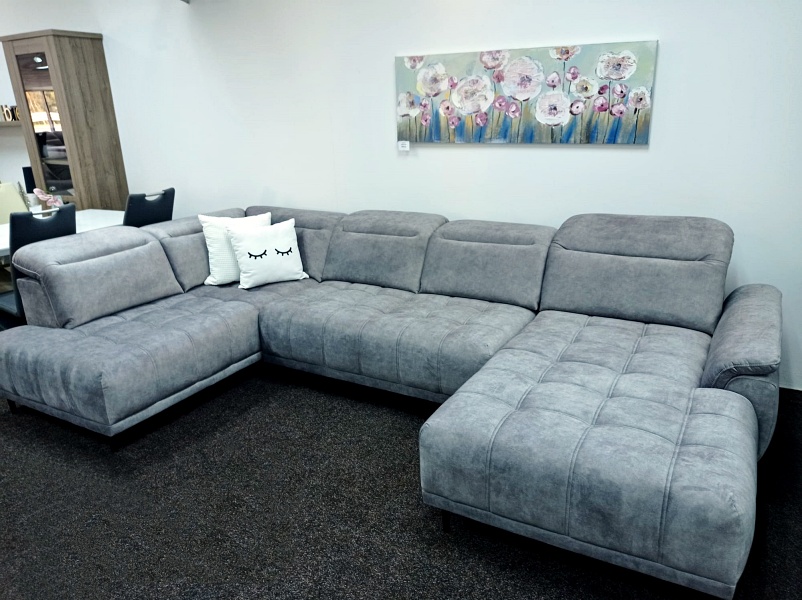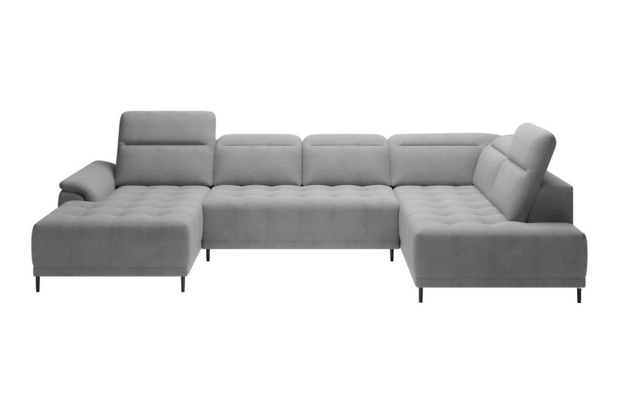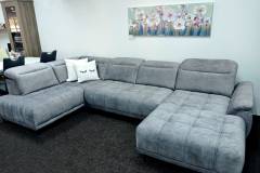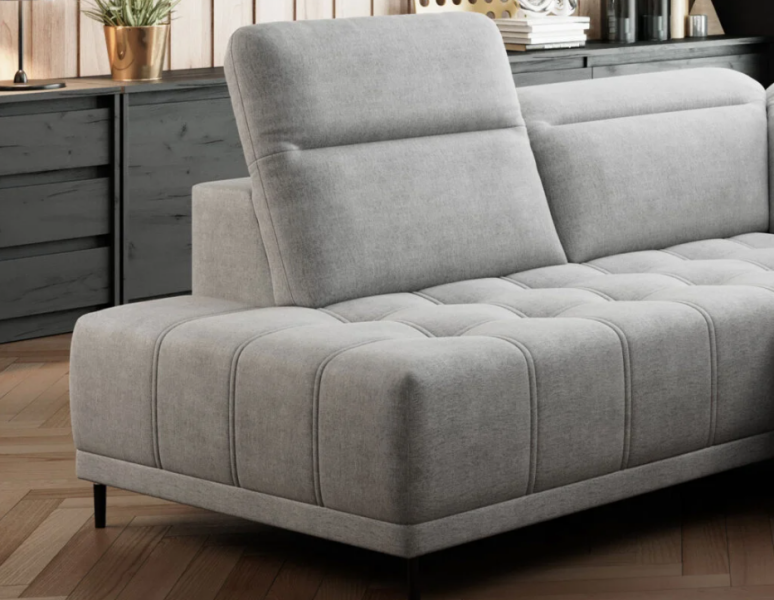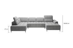 Coltar cu reglaj electric CALVARO XL catifea gri, cu tetiere reglabile 203x352x177cm