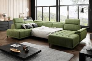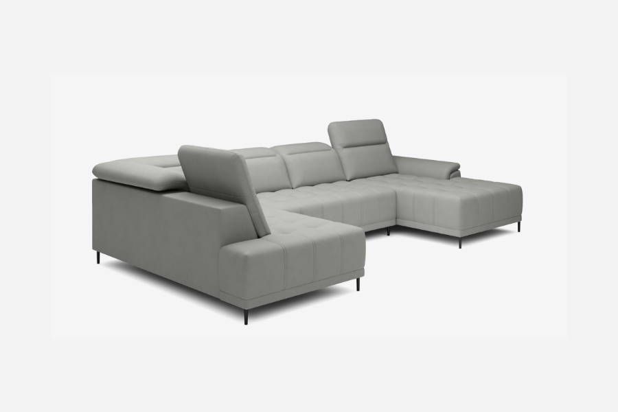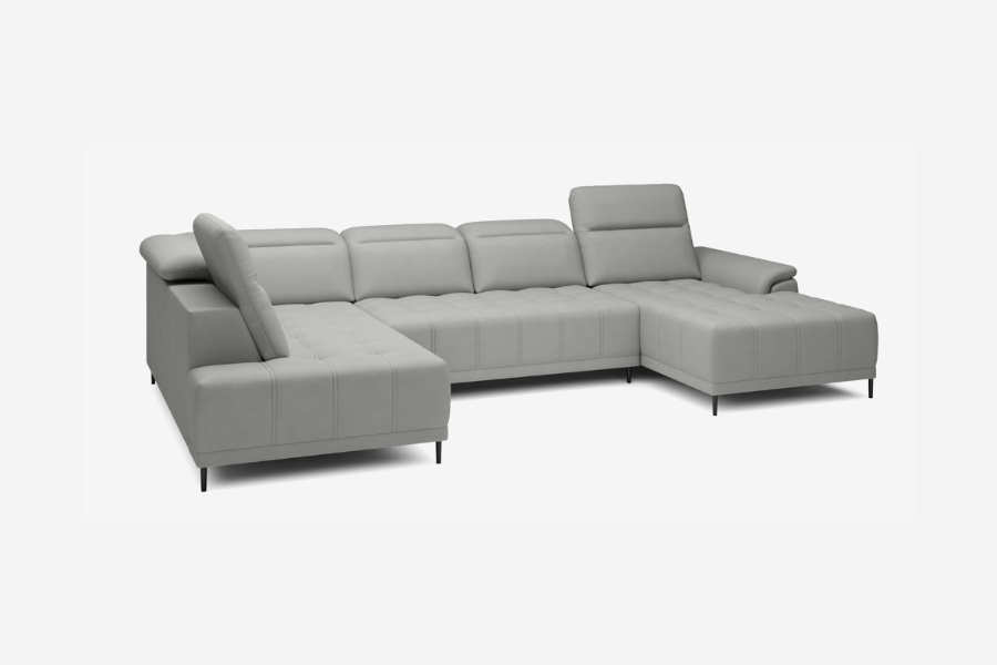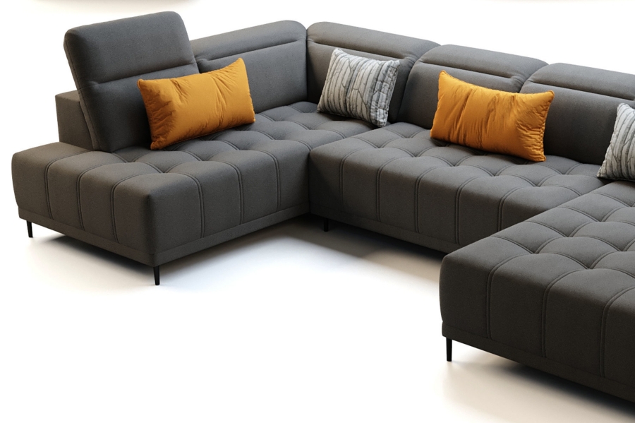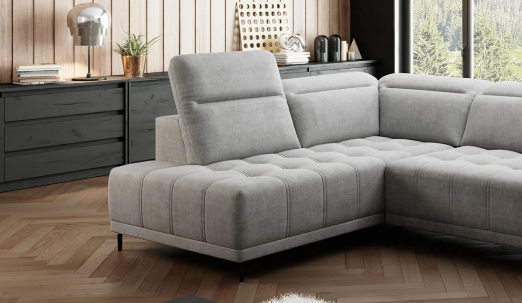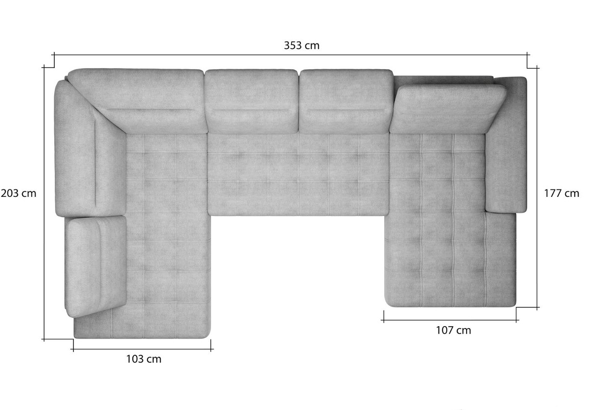 Coltar cu reglaj electric CALVARO XL catifea gri, cu tetiere reglabile 203x352x177cm