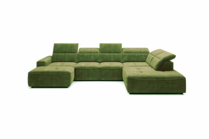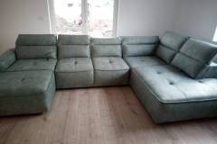 Coltar cu reglaj electric COLOMBO XL material textil verde, cu lada pentru depozitare, tetiere reglabile, spatar reglabil 227x376x182cm