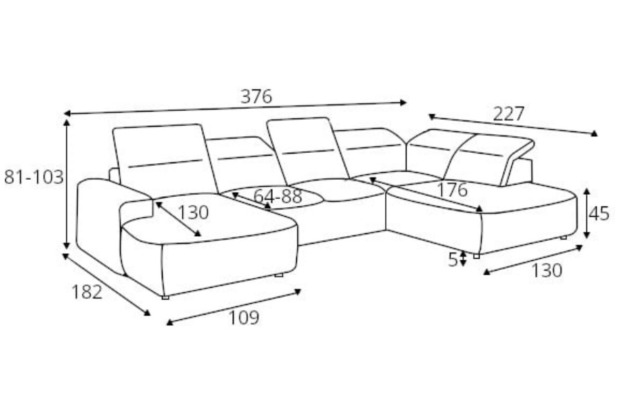 Adancime sezlong scurt: 109 cm