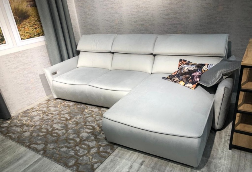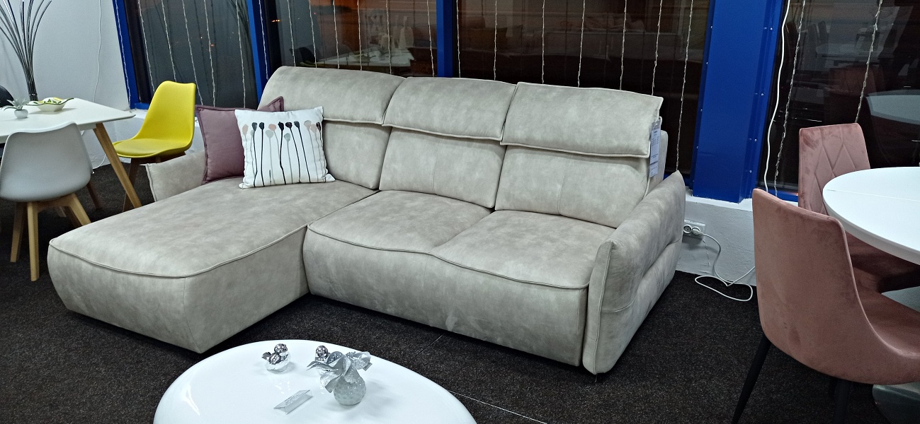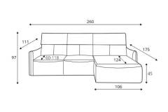 Coltar cu reglaj electric MANGO MINI W material catifea, cu lada pentru depozitare 260x175cm