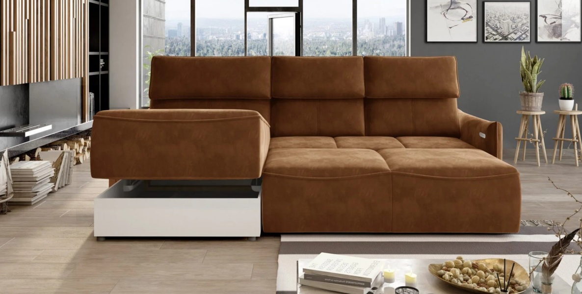Coltar extensibil FIRA cu lada pentru depozitare, personalizabil 280x185cm