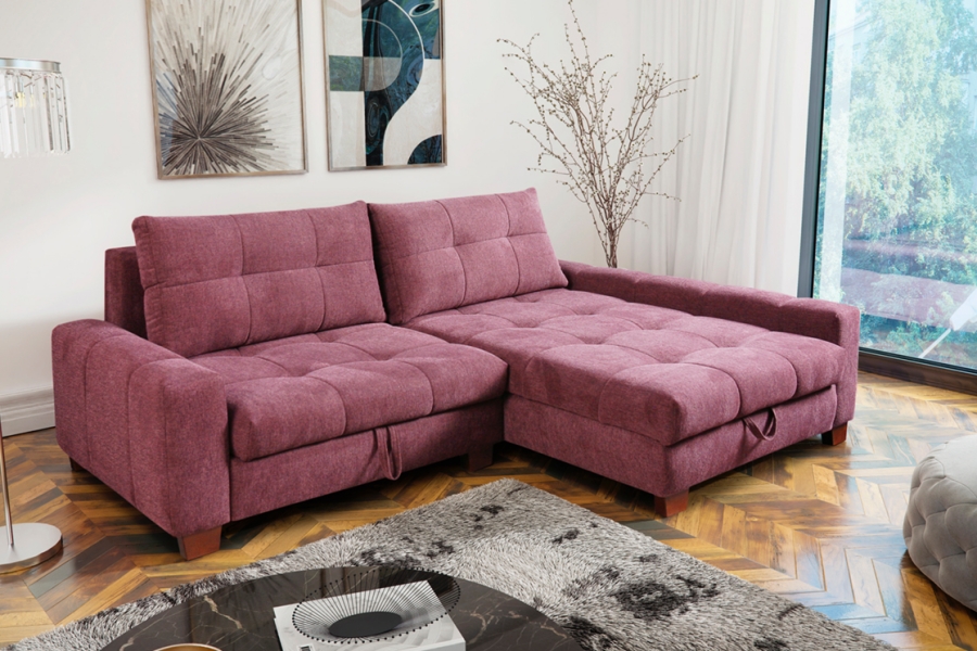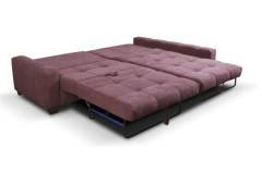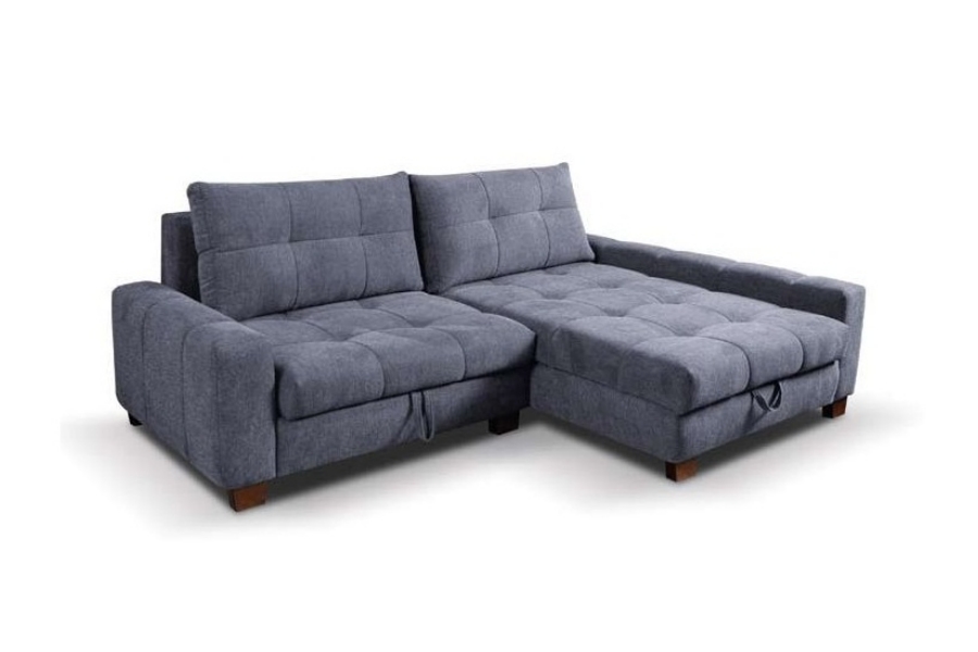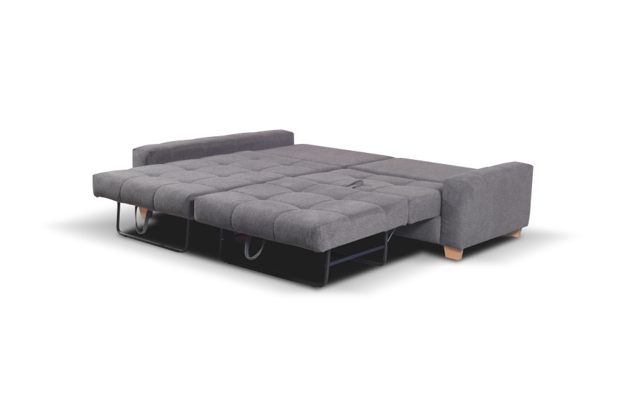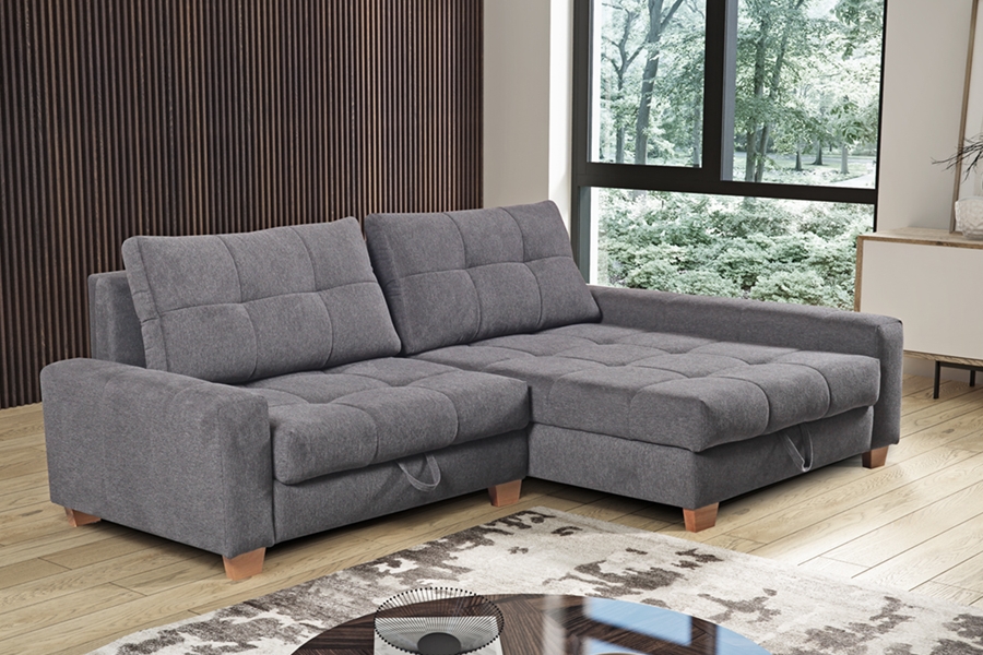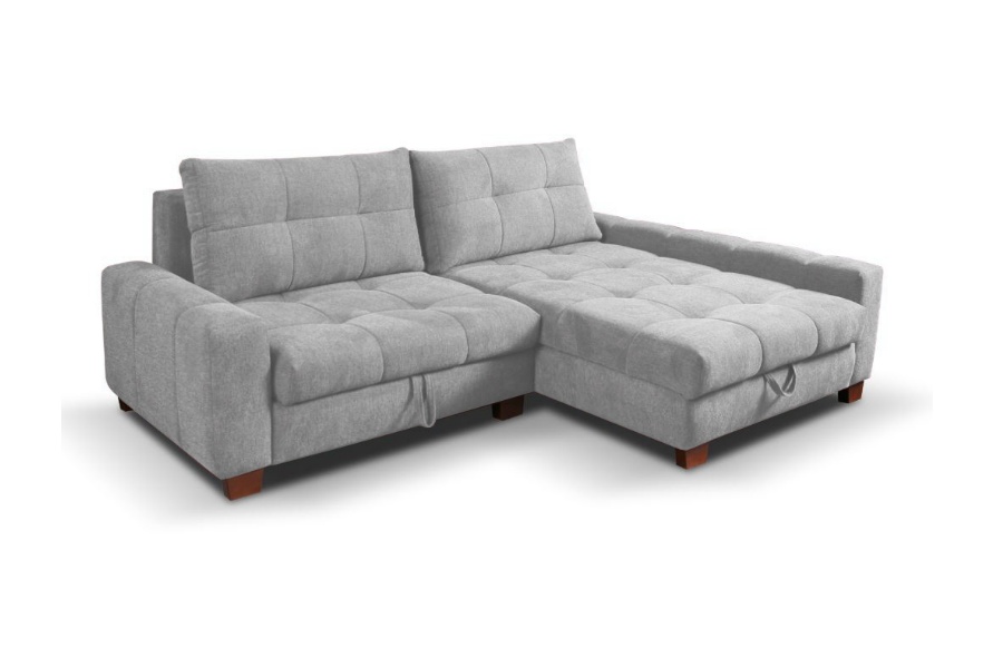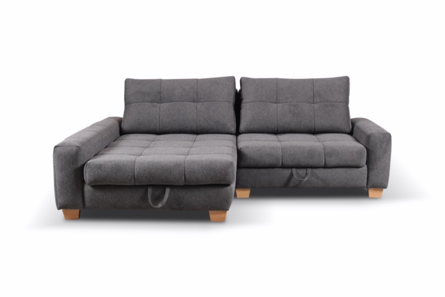 Coltar extensibil PICCOLO material textil gri, cu lada pentru depozitare 234x167cm