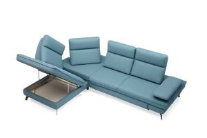 Coltar extensibil TOKYO L catifea vernil, cu lada pentru depozitare, spatar reglabil 280x205cm