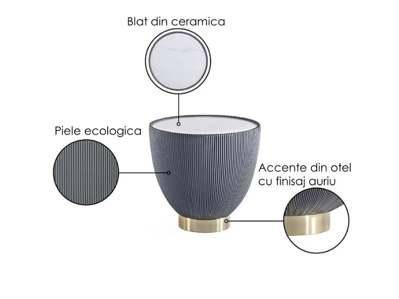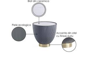 Materiale folosite la productie: ceramica cu efect de marmura, metal, otel, ecopiele