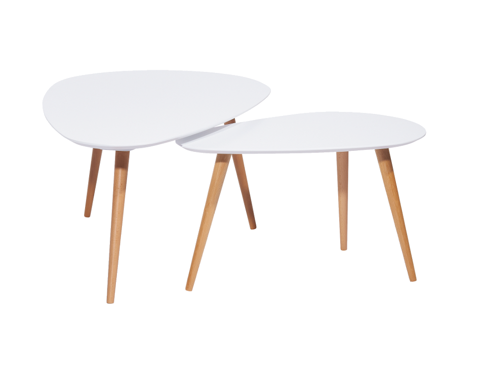 Set 2 masute NOLAN B WHITE din MDF alb si lemn de fag 116x66xH45cm / 75x43xH39cm