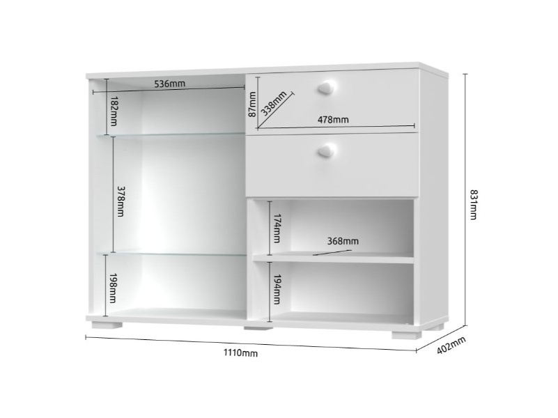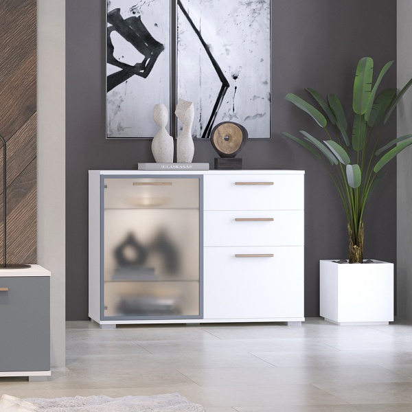 Comoda cu 1 usa din sticla, 1 usa mata si 2 sertare C9 ALL ROOM CONCEPT 111x83x40cm configurabila