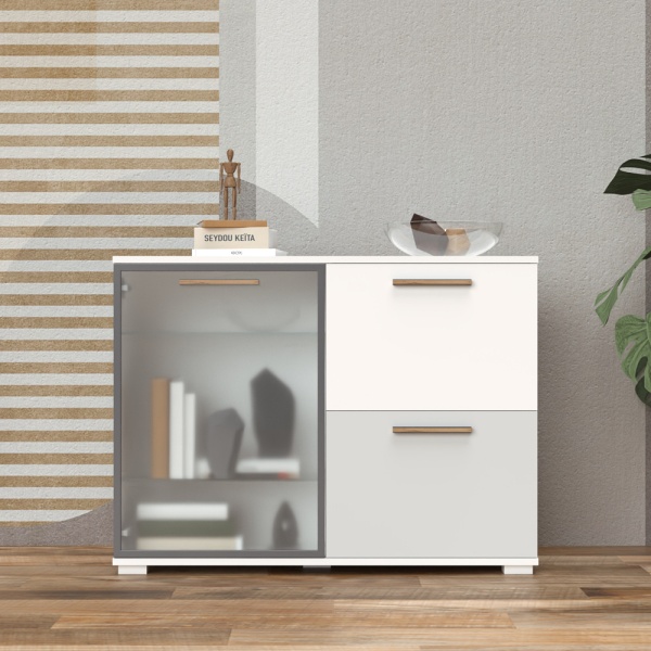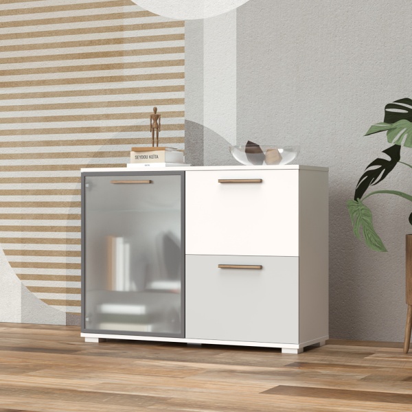 Comoda cu 1 usa din sticla si 2 usi mate C8 ALL ROOM CONCEPT 111x83x40cm configurabila