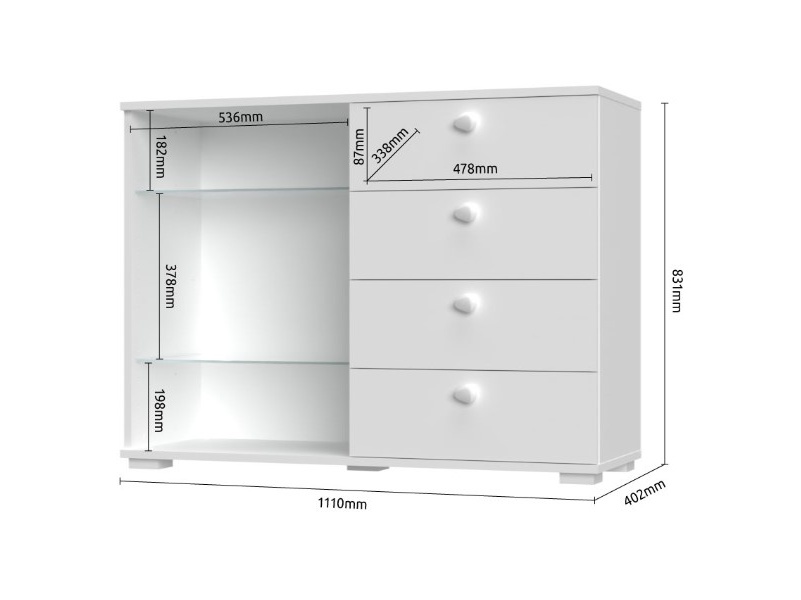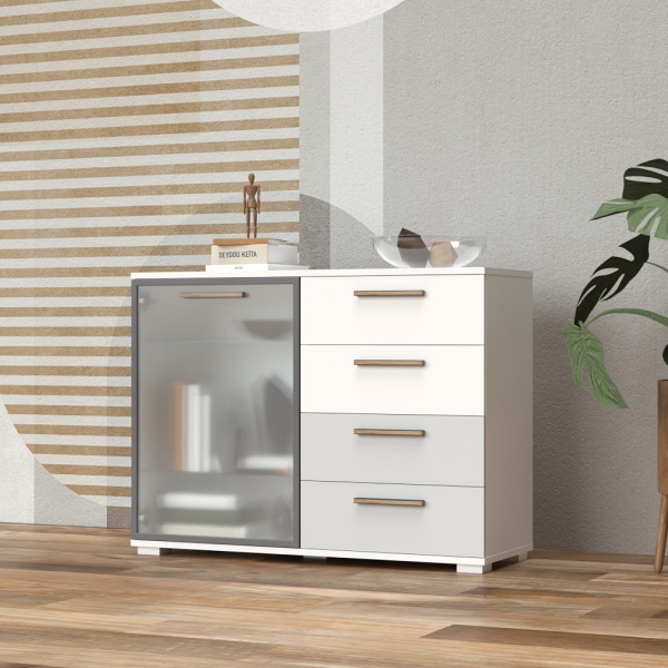 Comoda cu 1 usa din sticla si 4 sertare C10 ALL ROOM CONCEPT 111x83x40cm configurabila