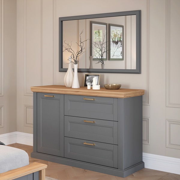 Comoda cu 1 usa si 3 sertare TARA GREY 138x91x48cm grafit mat/ nuc Pacific