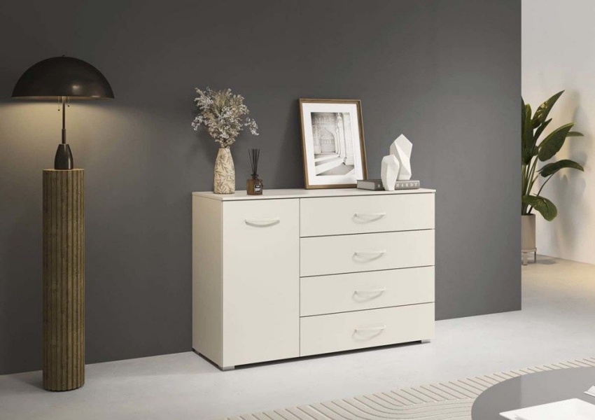 Comoda cu 1 usa si 4 sertare ADITIO 120x81x42cm champagne, manere champagne