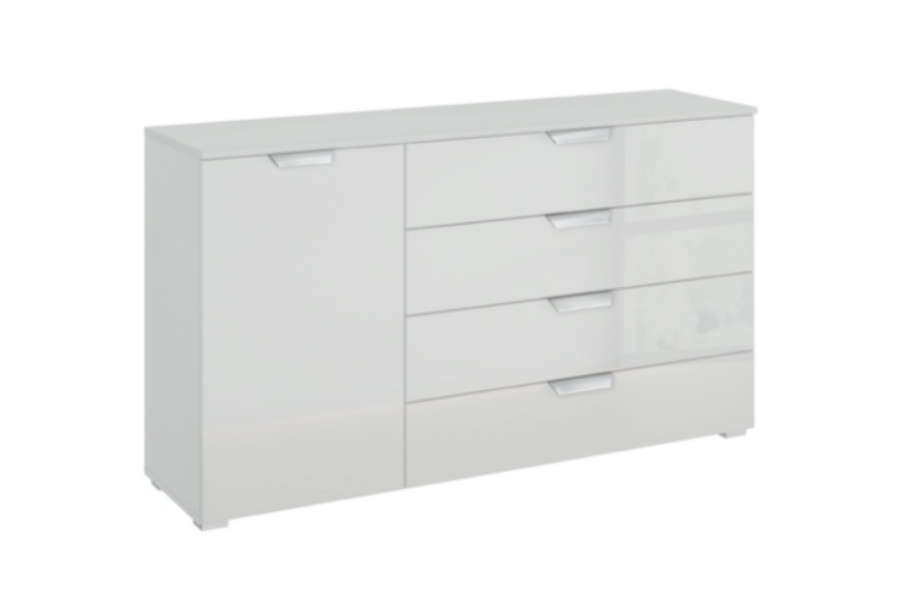 Comoda cu 1 usa si 4 sertare ADITIO 140x81x42cm alb alpin/ sticla alba