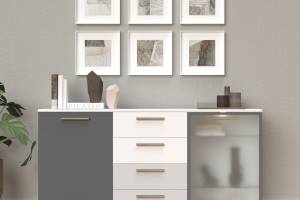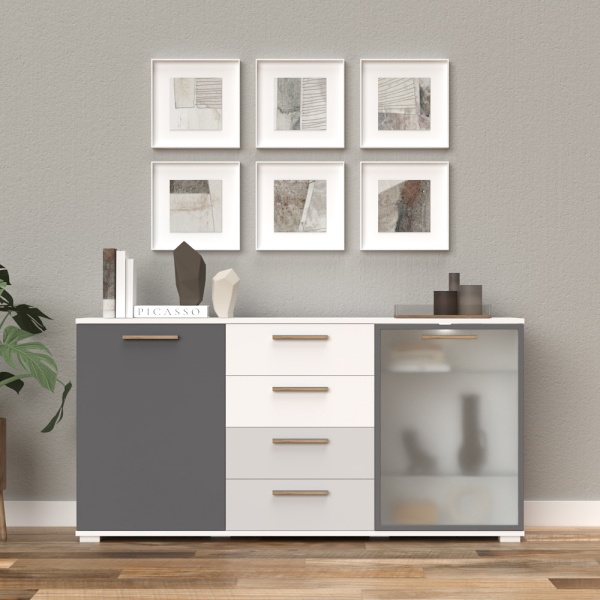 Comoda cu 2 usi, 1 usa din sticla si 4 sertare D8 ALL ROOM CONCEPT 167x83x40cm configurabila