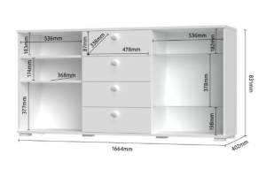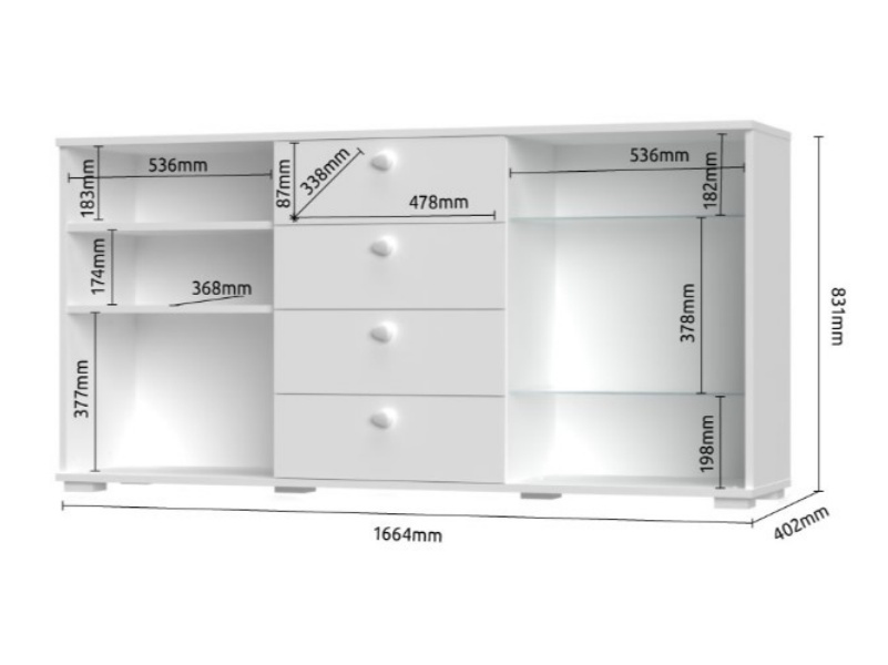 - comoda are incluse 4 polite (2 polite din PAL + 2 polite din sticla)