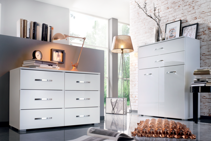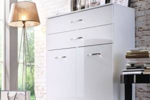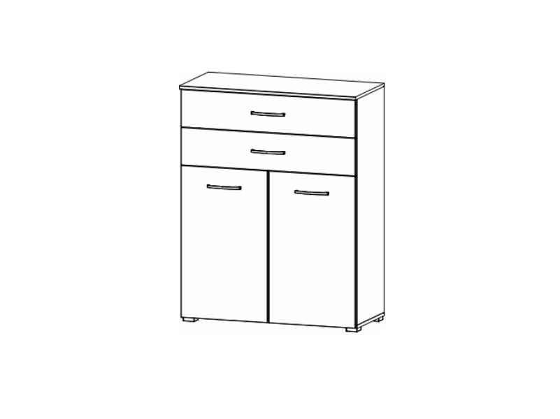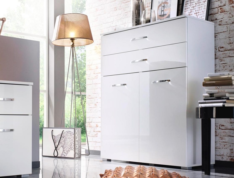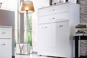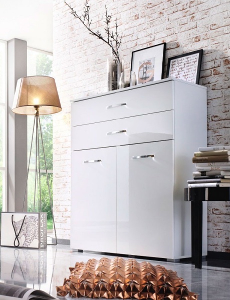 Comoda cu 2 usi si 2 sertare ADITIO 80x100x42cm alb alpin/ alb lucios
