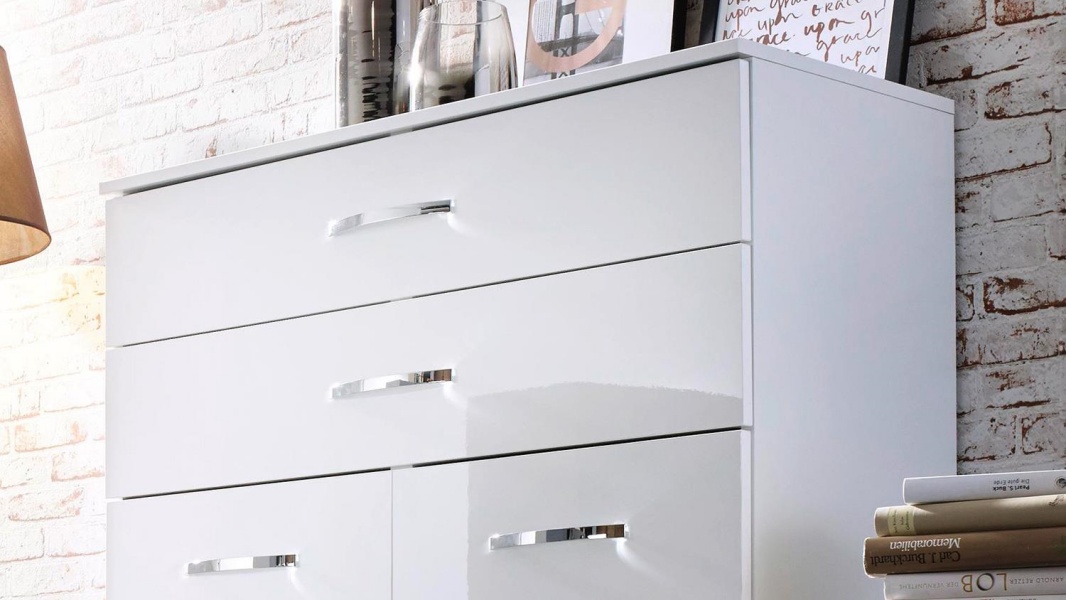 Comoda poate avea sertare cu sistem de culisare pe sine sau usi cu balamale