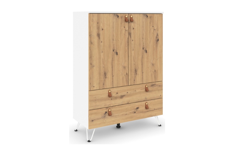 Comoda cu 2 usi si 2 sertare ADITIO 80x100x43cm alb alpin/ stejar Artisan