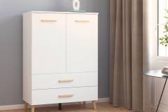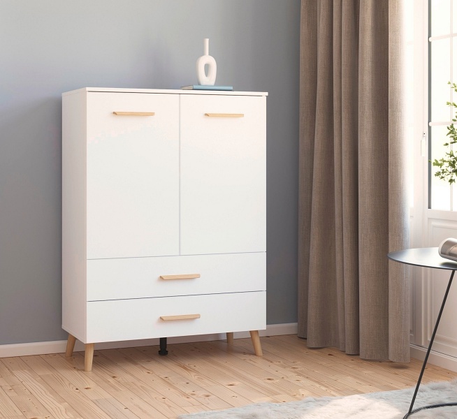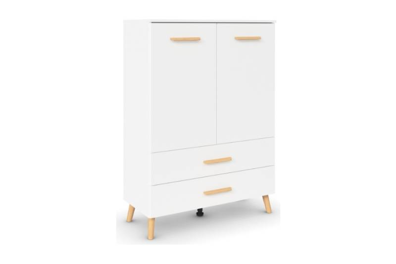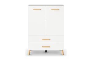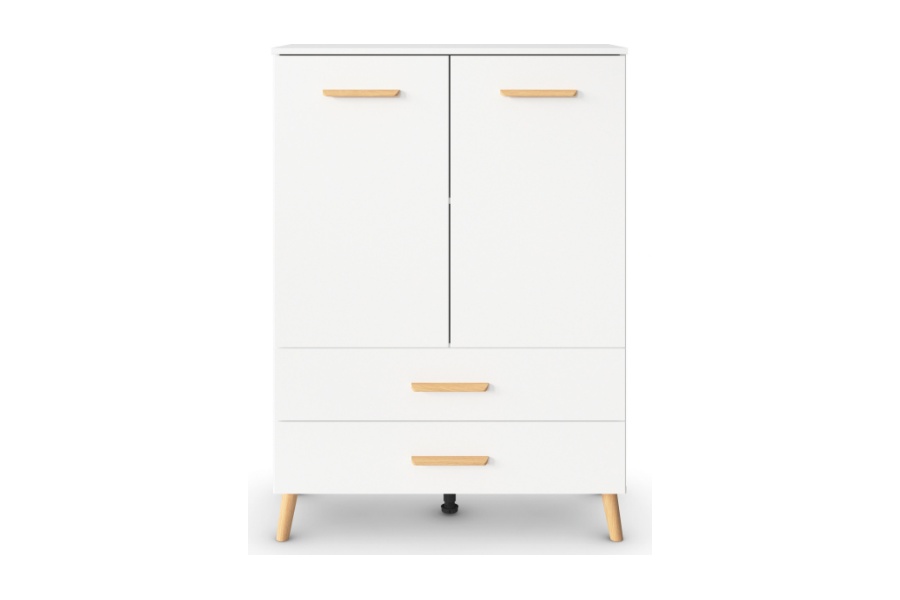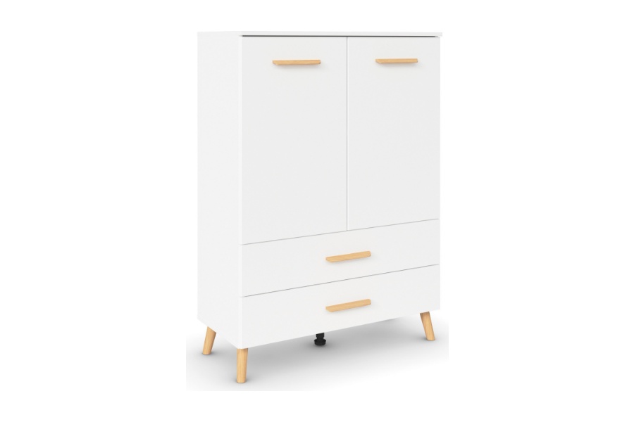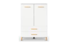 Comoda cu 2 usi si 2 sertare ADITIO 80x113x42cm alb alpin, manere si picioare stejar