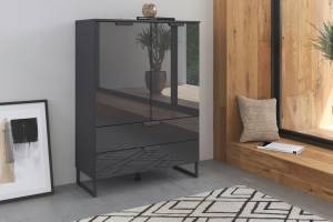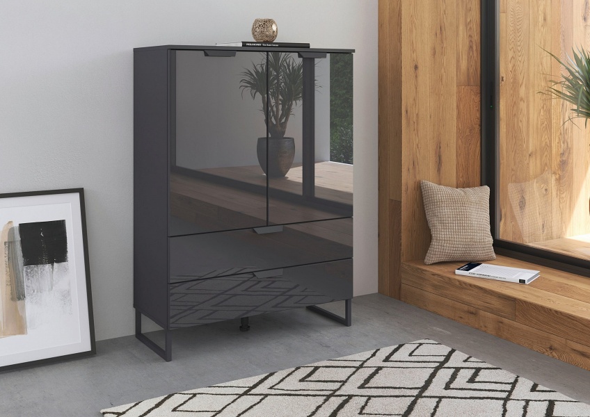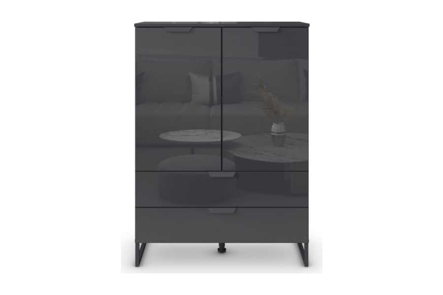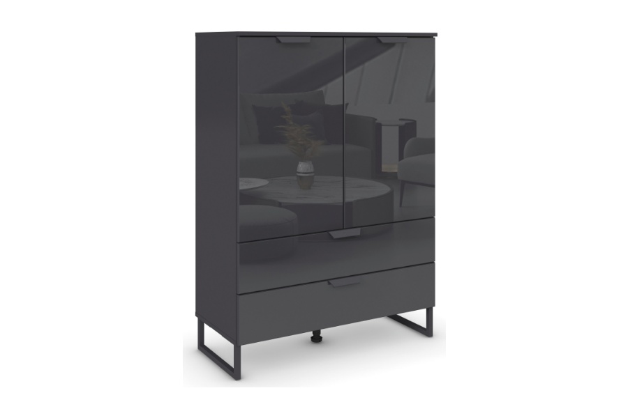 Comoda cu 2 usi si 2 sertare ADITIO 80x113x42cm gri metalic/ sticla basalt