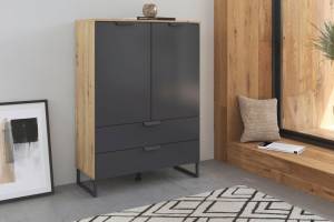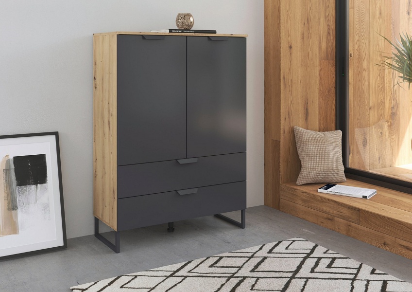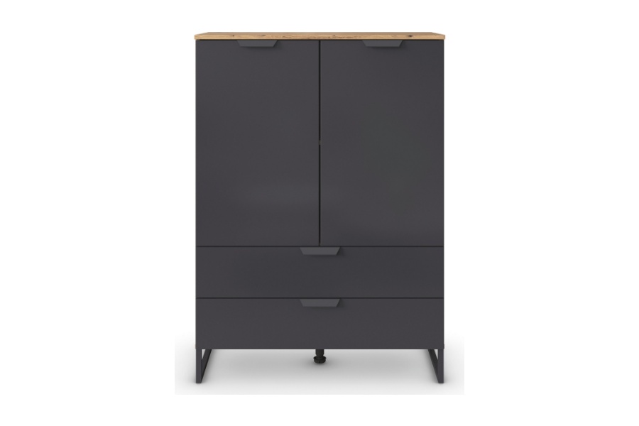 Comoda cu 2 usi si 2 sertare ADITIO 80x113x42cm stejar artisan/ gri metalic