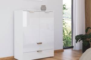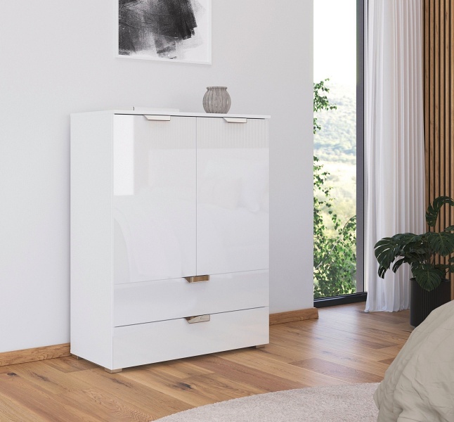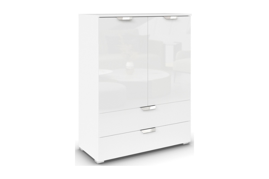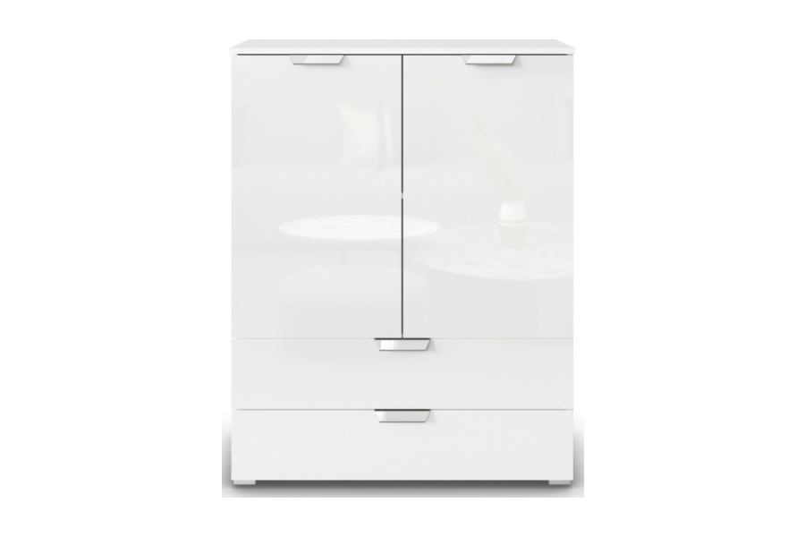 Comoda cu 2 usi si 2 sertare ADITIO GLAMOUR 80x100x42cm alb alpin/ alb lucios