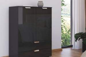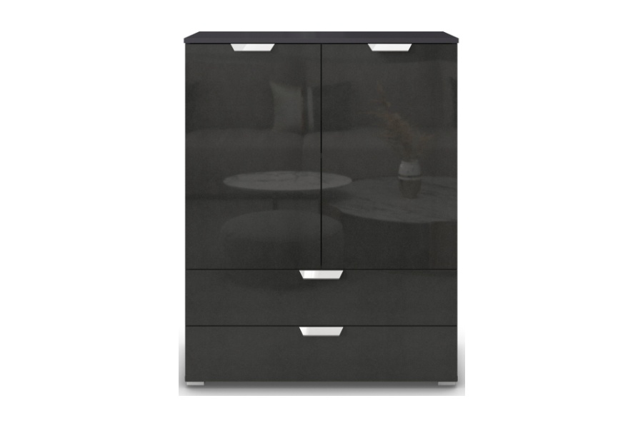 Comoda cu 2 usi si 2 sertare ADITIO GLAMOUR 80x100x42cm gri metalic/ gri metalic lucios