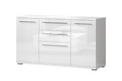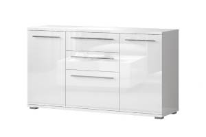 Comoda cu 2 usi si 3 sertare PIANO WHITE 150x85x45cm alb lucios, manere crom