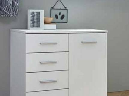 - trei usi si doua sertare, decor alb lucios
