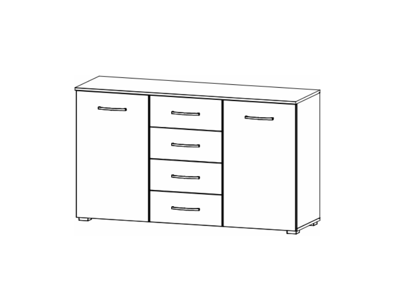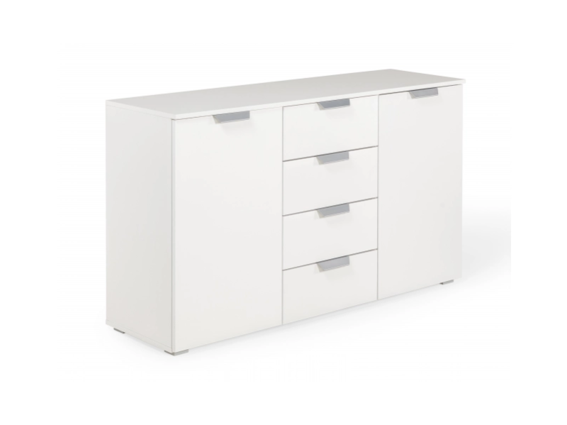 Comoda cu 2 usi si 4 sertare ADITIO 120x81x42cm alb alpin/ alb lucios