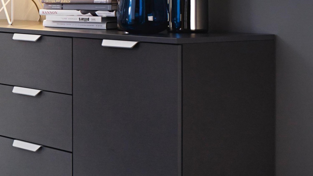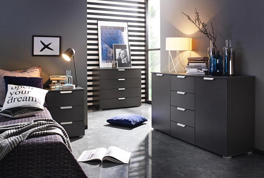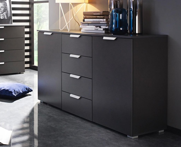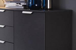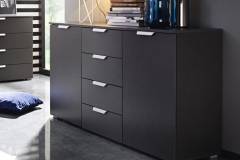 Comoda poate avea sertare cu sistem de culisare pe sine sau usi cu balamale