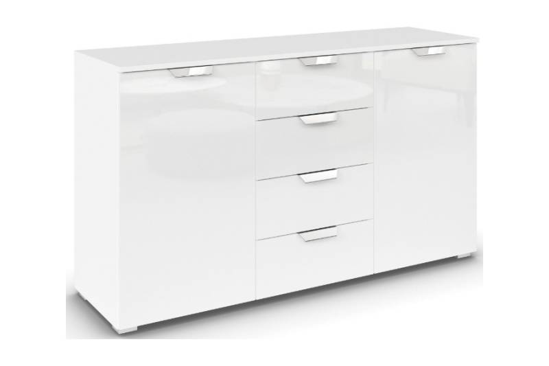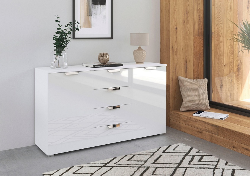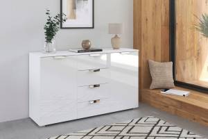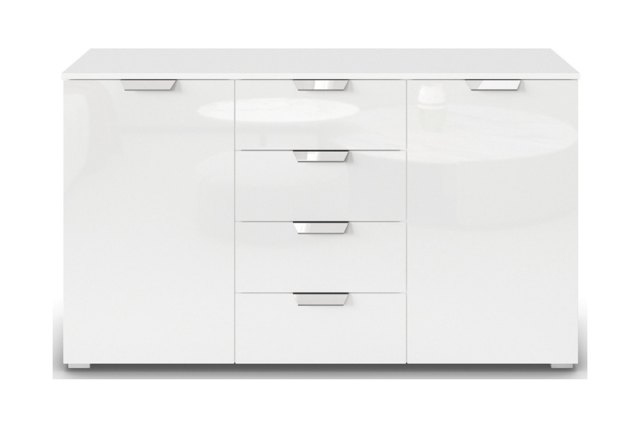 Comoda cu 2 usi si 4 sertare ADITIO GLAMOUR 120x81x42cm alb alpin/ alb lucios
