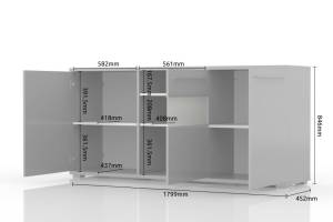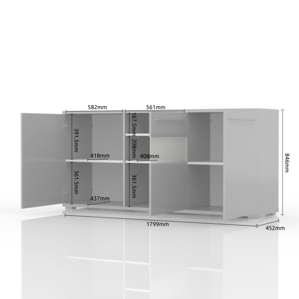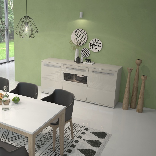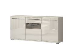 Comoda cu 3 usi cu portiune din sticla PIANO BEIGE 180x85x45cm bej lucios, manere crom