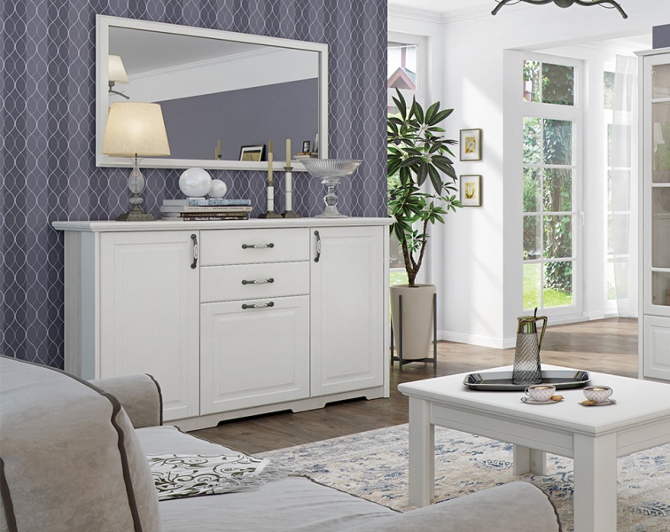 Comoda cu 3 usi si 2 sertare EVERGREEN 159x102x49cm ivory/ pin polar