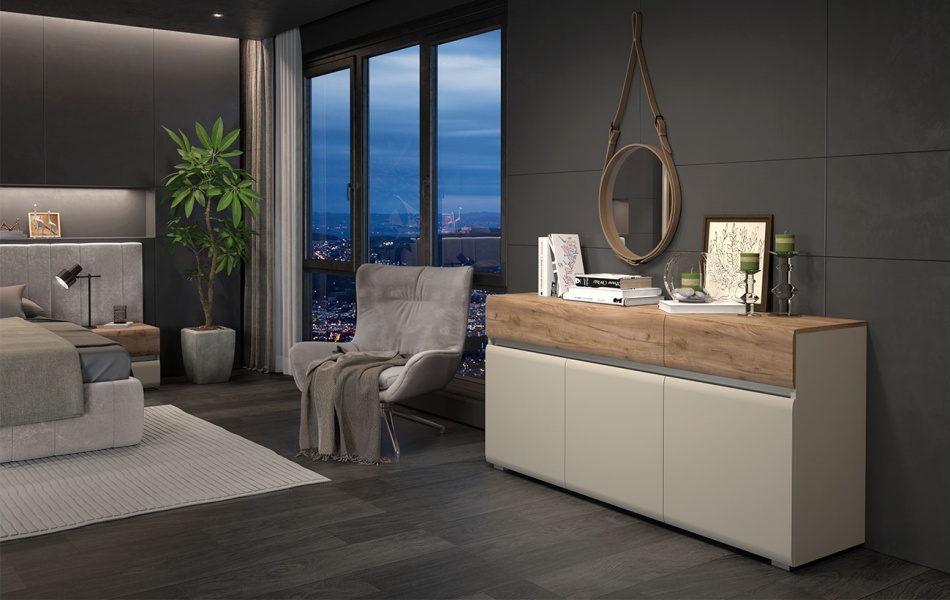 Comoda cu 3 usi si 2 sertare INVICTUS 176x86x45cm casmir/ stejar tabac