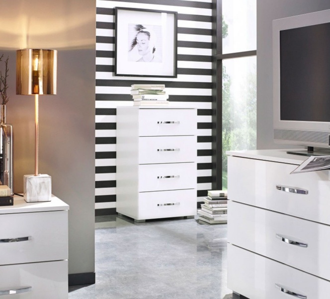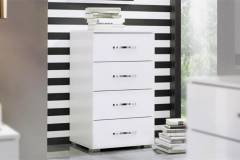 Comoda poate avea sertare cu sistem de culisare pe sine sau usi cu balamale
