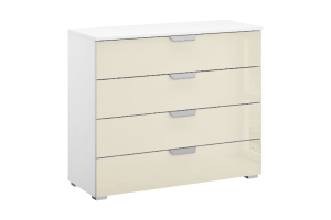 Comoda cu 4 sertare ADITIO 80x81x42cm alb alpin/ sticla champagne
