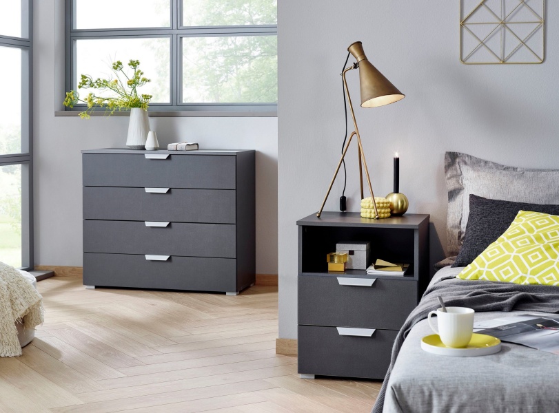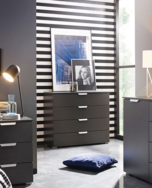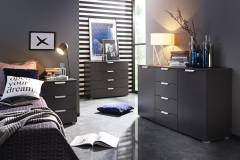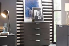 Comoda poate avea sertare cu sistem de culisare pe sine sau usi cu balamale
